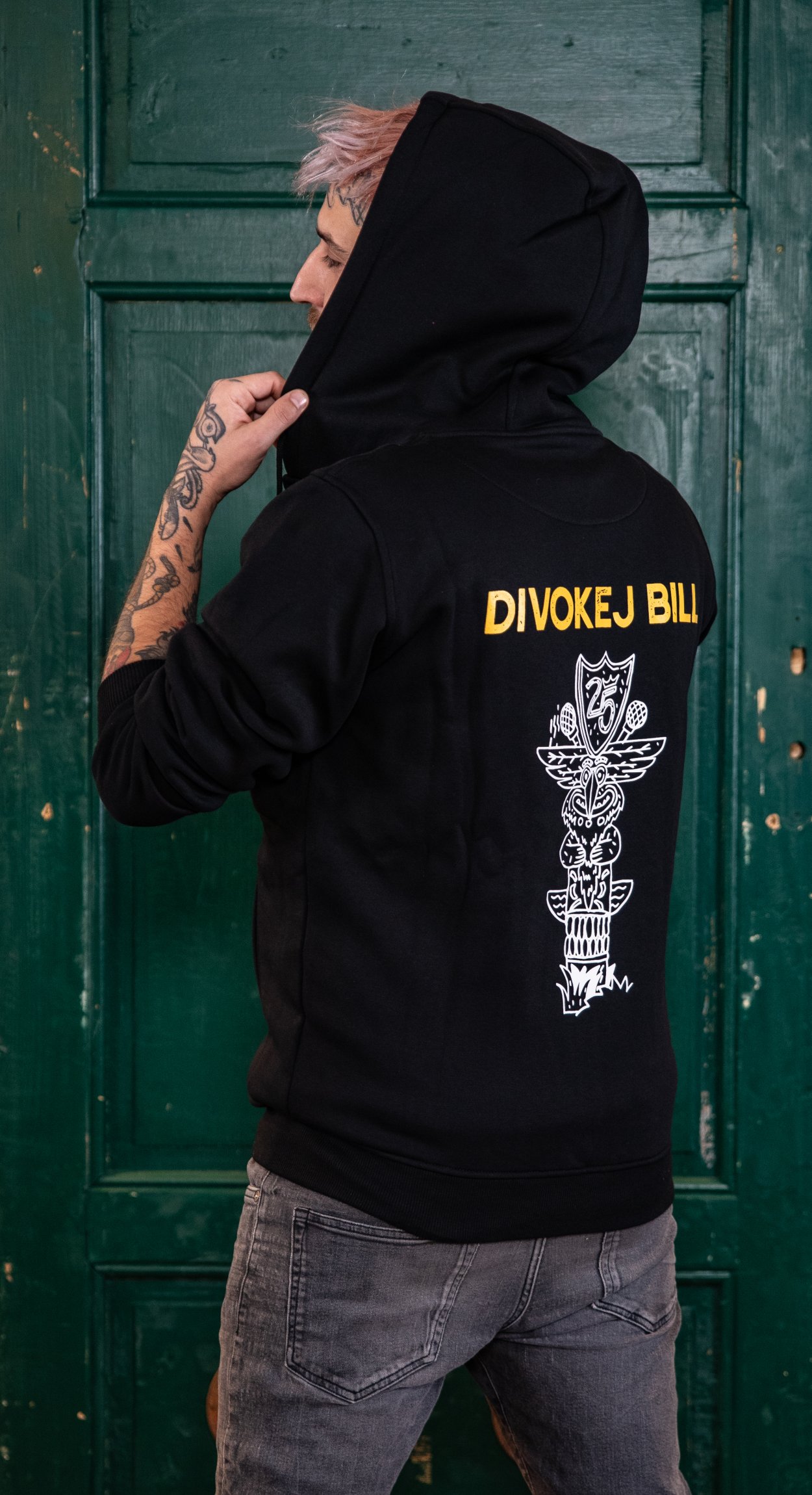 Model Jáchym měří 182 cm a na sobě má velikost L